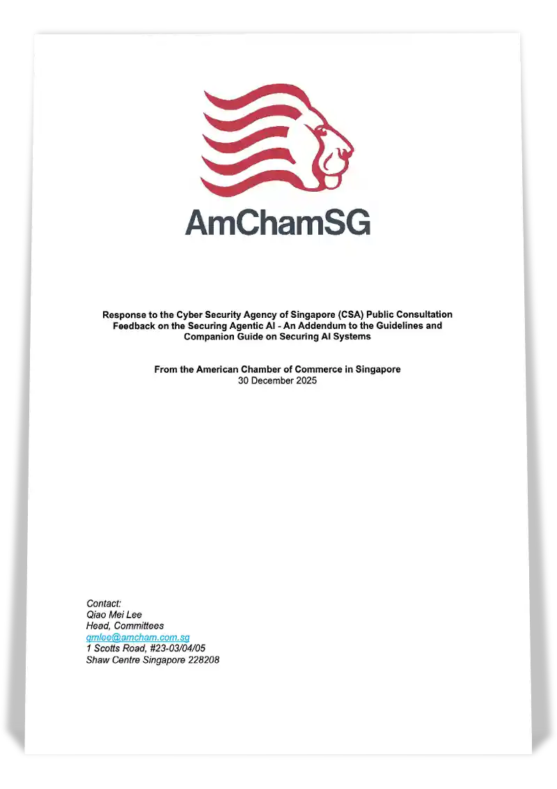 Each year AmCham Singapore works together with other AmChams in the region to survey senior members from U.S. companies to gather insights about business conditions and sentiment in Asia Pacific. These findings are then presented in intimate discussions with the Singapore and U.S. government. This is a key pillar of our advocacy work.